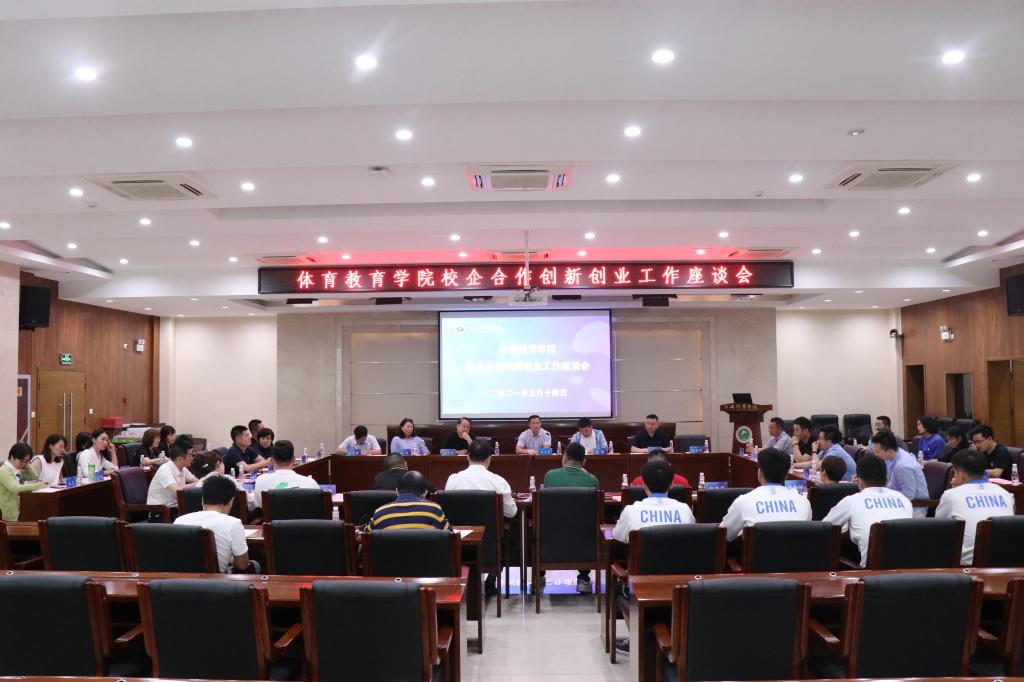 本网讯 5月14日下午,体育教育学院校企合作创新创业工作座谈会在二号行政楼6楼会议室召开。体育教育学院党委书记高月宏、学工部副部长樊敏出席座谈会。来自长龙集团、陕西沐恩科技生物有限公司、西安华商网络传媒有限公司等10家非体育类企业与国家体育总局中奥体育、陕西全民健身服务有限公司等16家体育类企业参加了本次座谈会。座谈会由高月宏主持。
