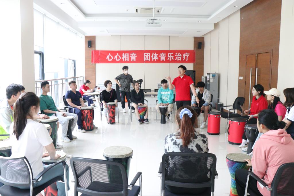 本网讯 为宣传普及心理健康知识,进一步提高大学生心理健康素质,5月17日下午,由学工部心理健康中心主办的心理育人系列活动之“‘心心相音’音乐治疗放松团体活动”如期举行。此次音乐治疗由西安国际医学中心音乐治疗团队音乐治疗师张缤、郭威铭负责开展。