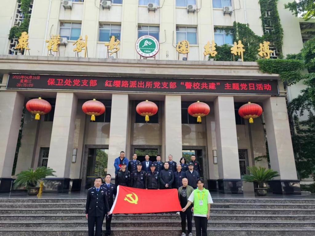 本网讯 4月19日,保卫处党支部与红缨路派出所党支部联合开展了“学习贯彻习近平新时代中国特色社会主义思想,‘警校共建’携手护航校园平安”党支部主题党日活动。党委副书记文立新、西安市公安局碑林分局副局长靳琪、张小虎以及两个支部的全体党员参加了活动。