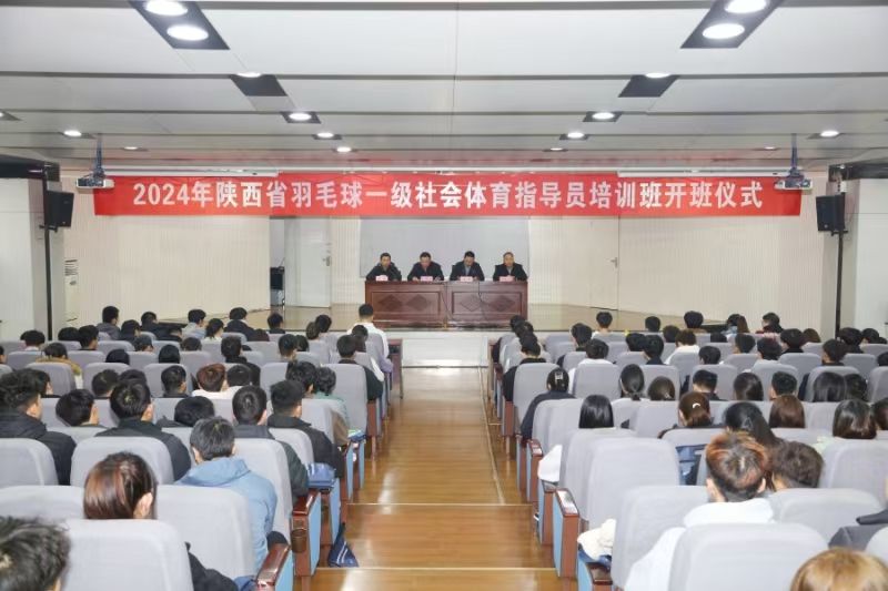 本网讯 近日,2024年陕西省羽毛球一级社会体育指导员培训班在我校含光校区举行。陕西省乒羽网运动管理中心副主任朱明皓出席并讲话,我校继续教育学院院长朱军参加,副院长纪伟主持,160名羽毛球专项学生及运动员分批接受了理论、专项技能实践培训。