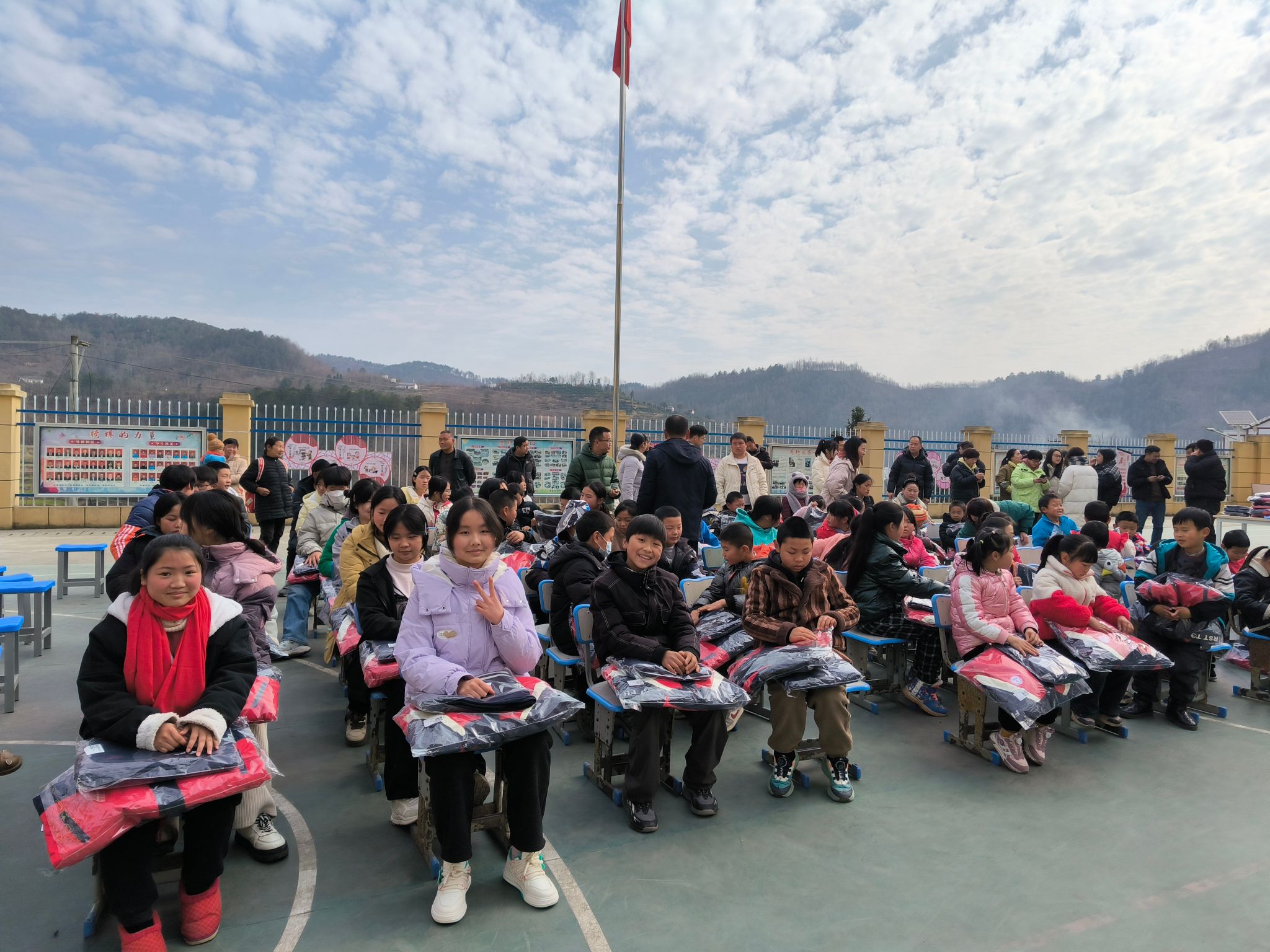 县河镇财梁九年制学校校长在致辞中对捐赠双方表达了诚挚的谢意。指出这批冬装校服不仅是物质上的支持,更是精神上的鼓舞,让孩子们感受到了社会的关爱和温暖,激励他们更加努力学习,回报社会。孩子们接过款式新颖、保暖舒适的冬装校服,脸上洋溢着幸福的笑容。此次捐赠活动不仅解决了孩子们的实际需求,更在他们心中播下了爱的种子。