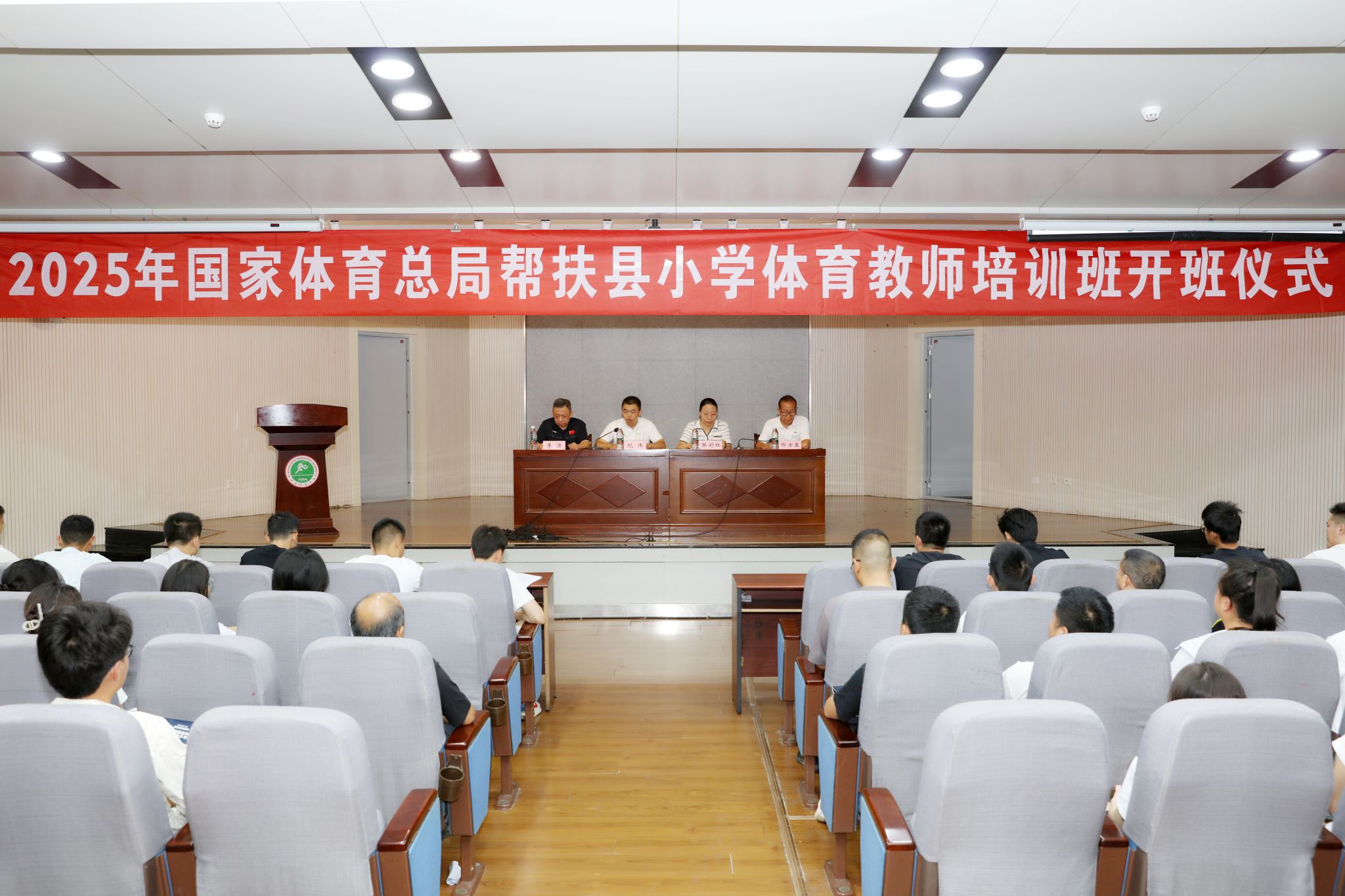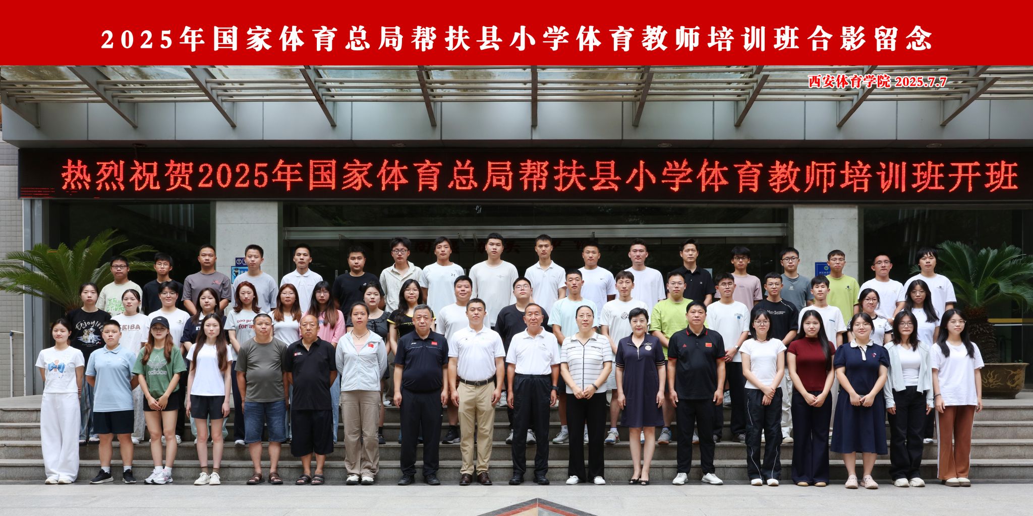 本网讯 7月7日上午,由国家体育总局定点帮扶工作领导小组办公室主办,西安体育学院具体组织实施的“2025年帮扶县小学体育教师培训班”在我校含光校区正式启动。来自湖南、贵州的51名小学体育教育骨干参加了培训。