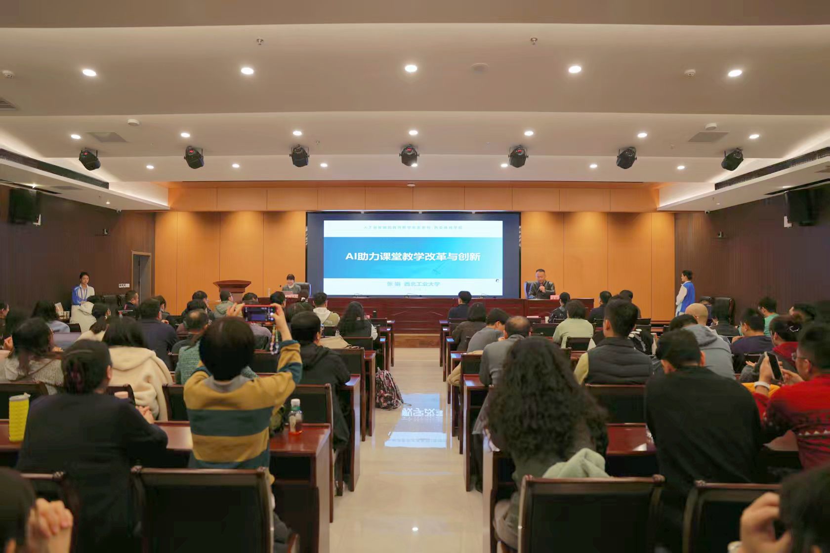 本网讯 进一步弘扬教育家精神,持续推动师德建设与课堂教学深度融合,助力教育教学改革创新,11月6日,我校在鄠邑校区举办2025年第九场师德师风报告会,邀请西北工业大学力学与交通运载工程学院张娟教授作题为《AI助力课堂教学改革与创新》的专题报告。各学院党政负责人、教师及辅导员代表到会学习。