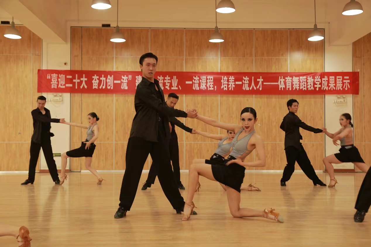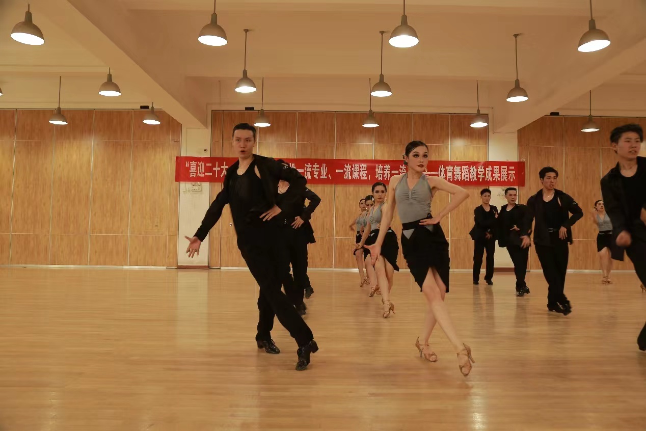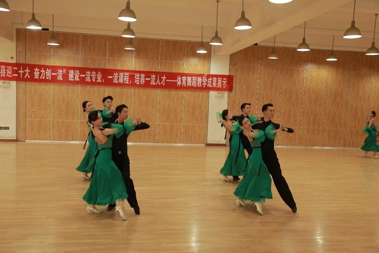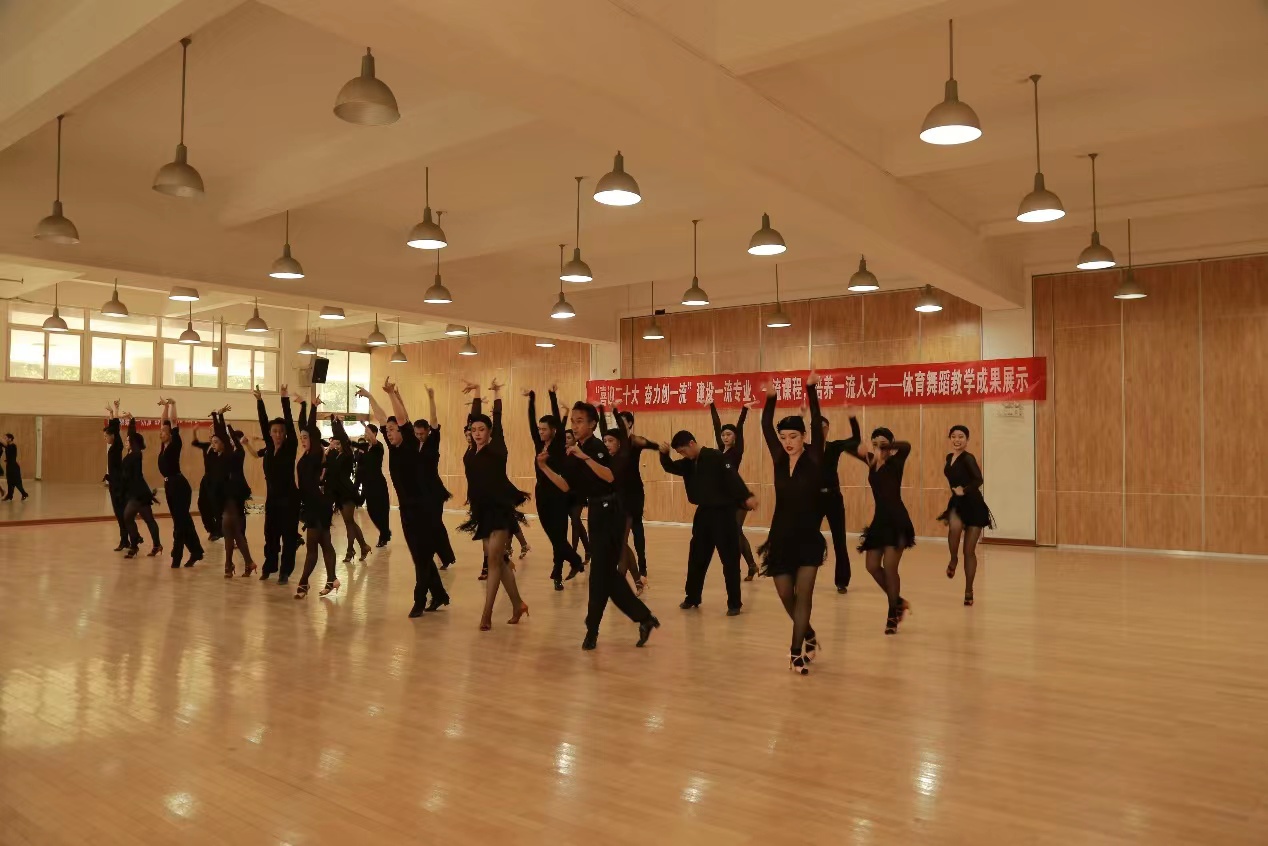 我校舞蹈表演专业于2020年被评为省级一流本科专业,2021年申报国家级一流本科专业,《拉丁舞》课程于2020年被评为西安体育学院首批校级一流本科课程,2021年被评为省级一流本科课程,《标准舞》课程于2021年申报校级一流本科课程。同时发展《体育舞蹈》课程线上线下混合式教学,教学视频已录制完成并上传至“学习通”平台,在进行了2轮教学实践后,视频点击量逐步增加。在双一流建设带动下,我们的教学成果也收获颇丰,近三年来,体育舞蹈方向学生参加各级各类专业比赛并勇创佳绩,专业能力及社会影响力不断增高。我们将继续秉承学校专业建设要求,进一步推动教学改革,不断创新,再创佳绩。
