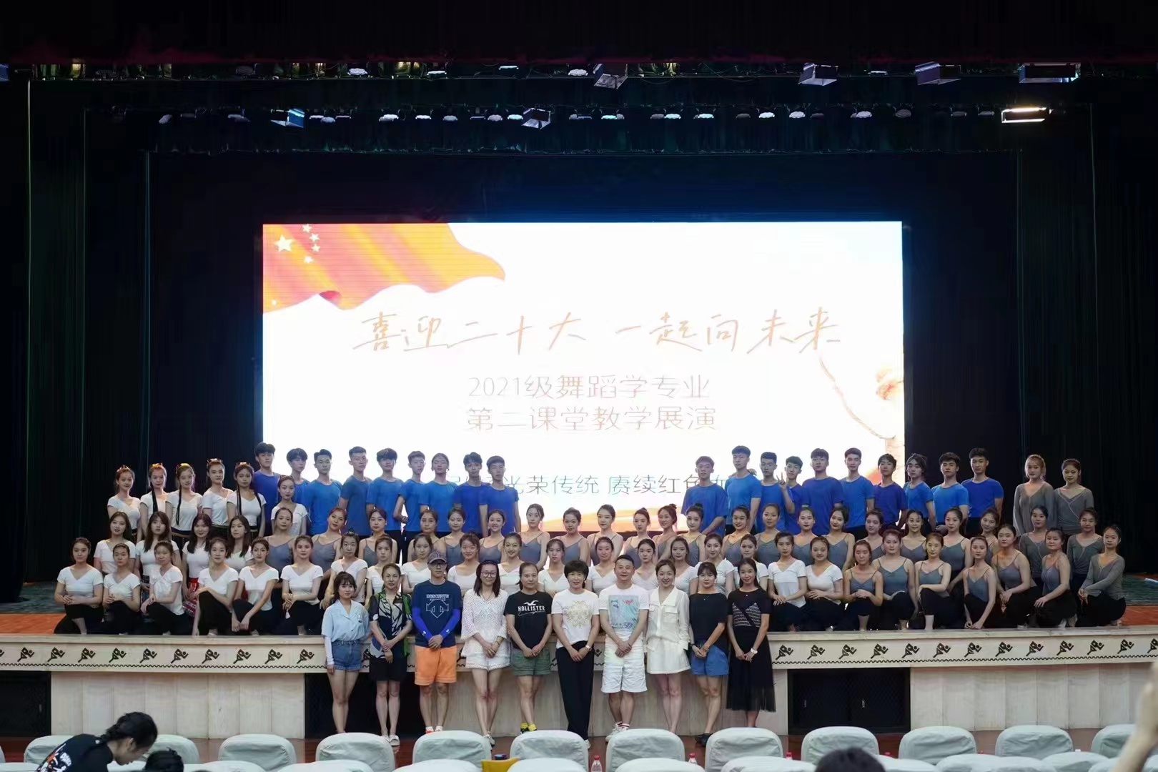 2021级指导教师周思思老师和郭琳老师将2021级舞蹈学三个班,以自然班为单位,自由分组,每组6-8人小集体,以自编舞蹈基本功(软开度、跳、转、翻)组合为主要内容进行展示,舞种不限,时间不得少于3分钟,最终筛选出18个作品,以“喜迎二十大,一起向未来”为汇报主题进行展示。