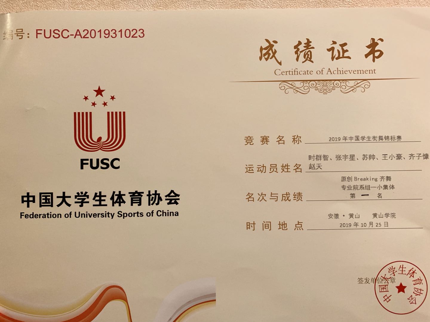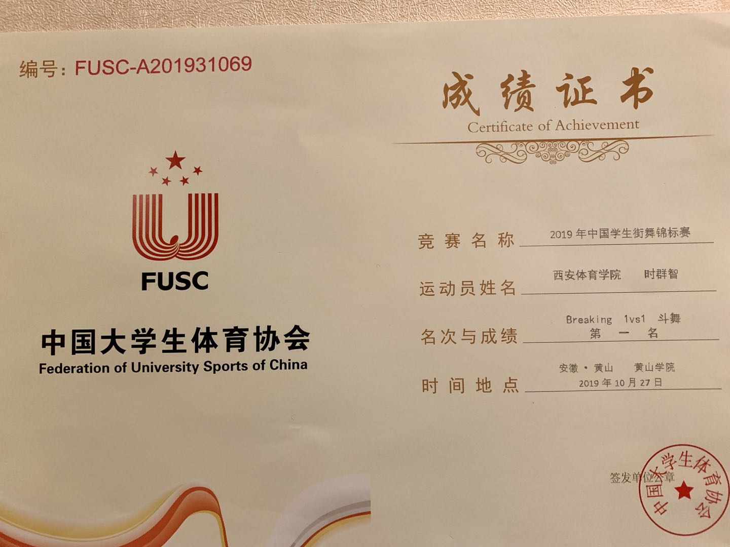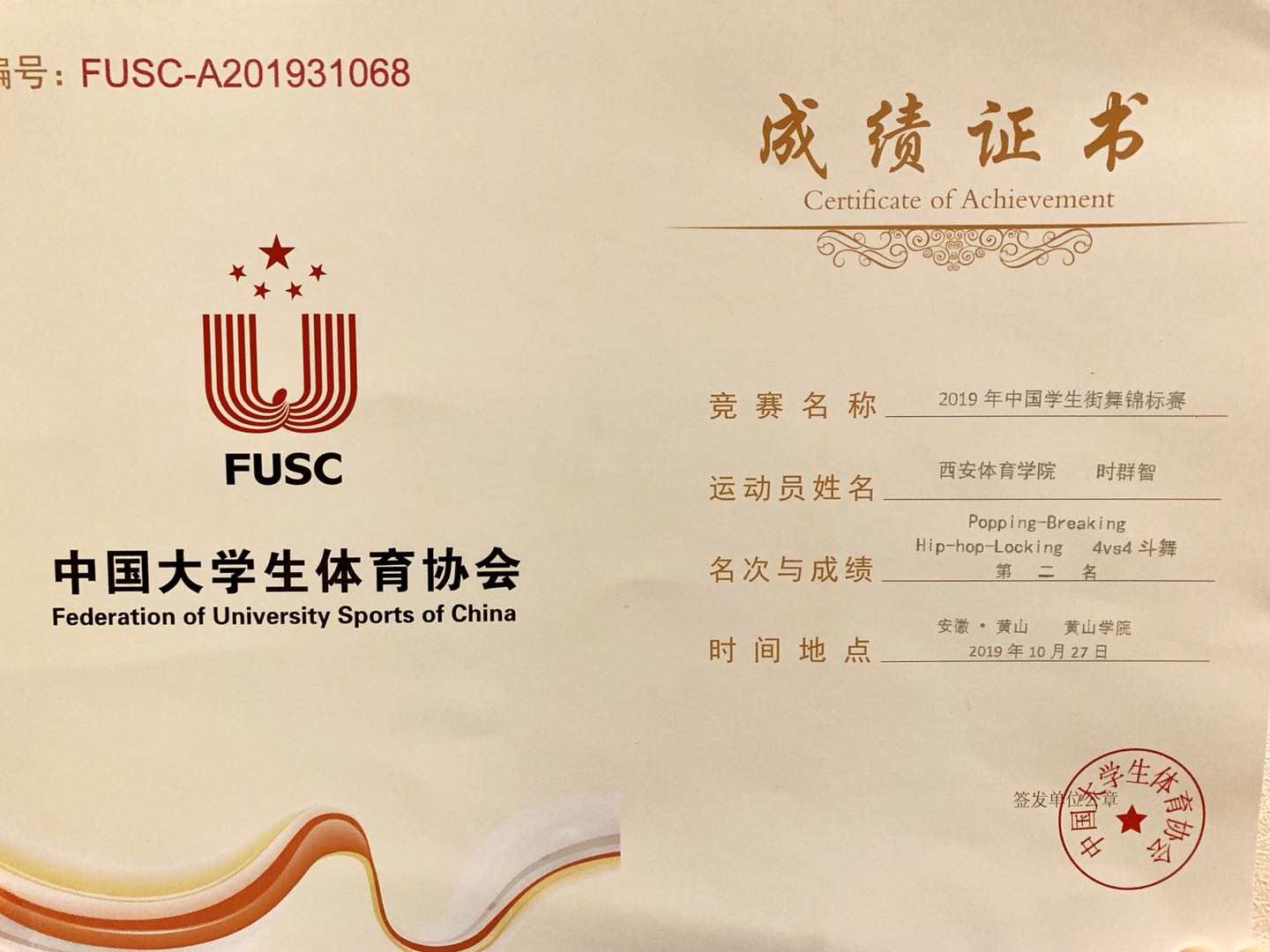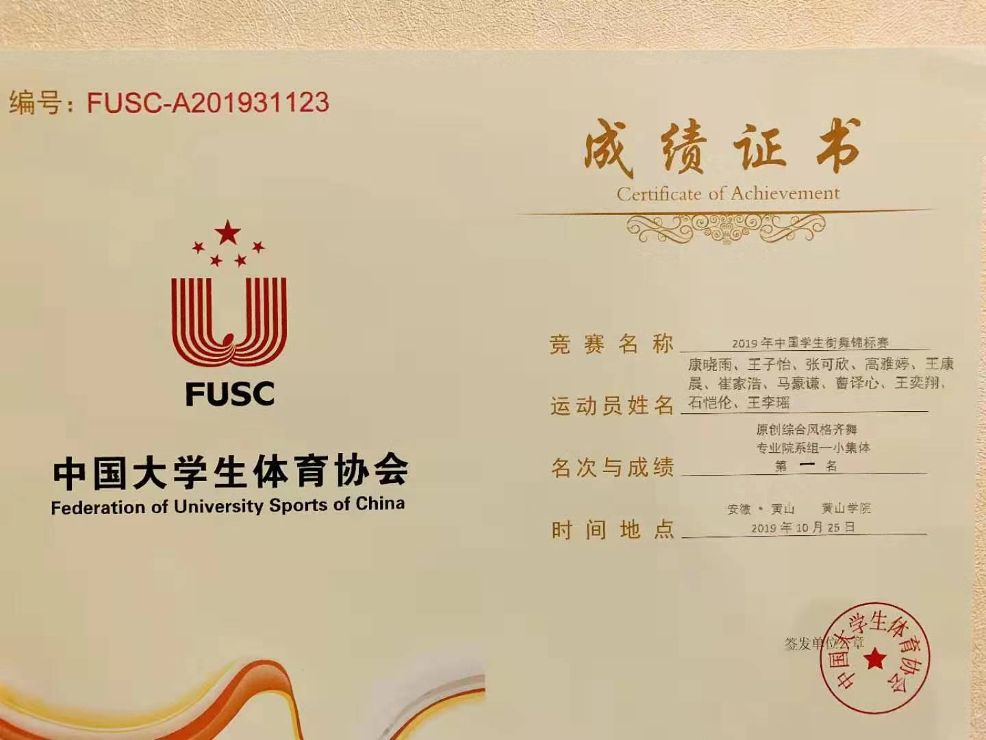 体育艺术学院在2019年中国学生街舞锦标赛中喜获佳绩