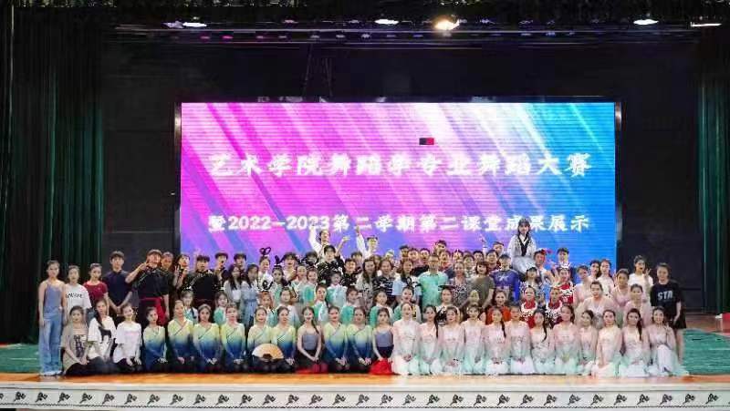 为学习贯彻习近平新时代中国特色社会主义思想主题教育,努力在以学铸魂、以学增智、以学正风、以学促干方面取得实效, 2023年6月21日,艺术学院舞蹈学专业舞蹈大赛暨2022-2023第二学期第二课堂成果展示在艺术馆三楼礼堂成功举行。此次大赛面向舞蹈学专业大一、大二及大三的全体同学,活动旨在为各年级同学们搭建展示自我,挑战自我,促进专业交流的平台。