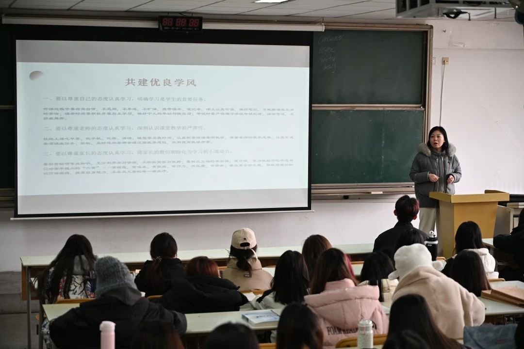 会上,邱莹老师对开学一个多月以来学风建设存在的问题进行了剖析,强调了课堂纪律观念,并向全体同学做出共创优良学风的动员。