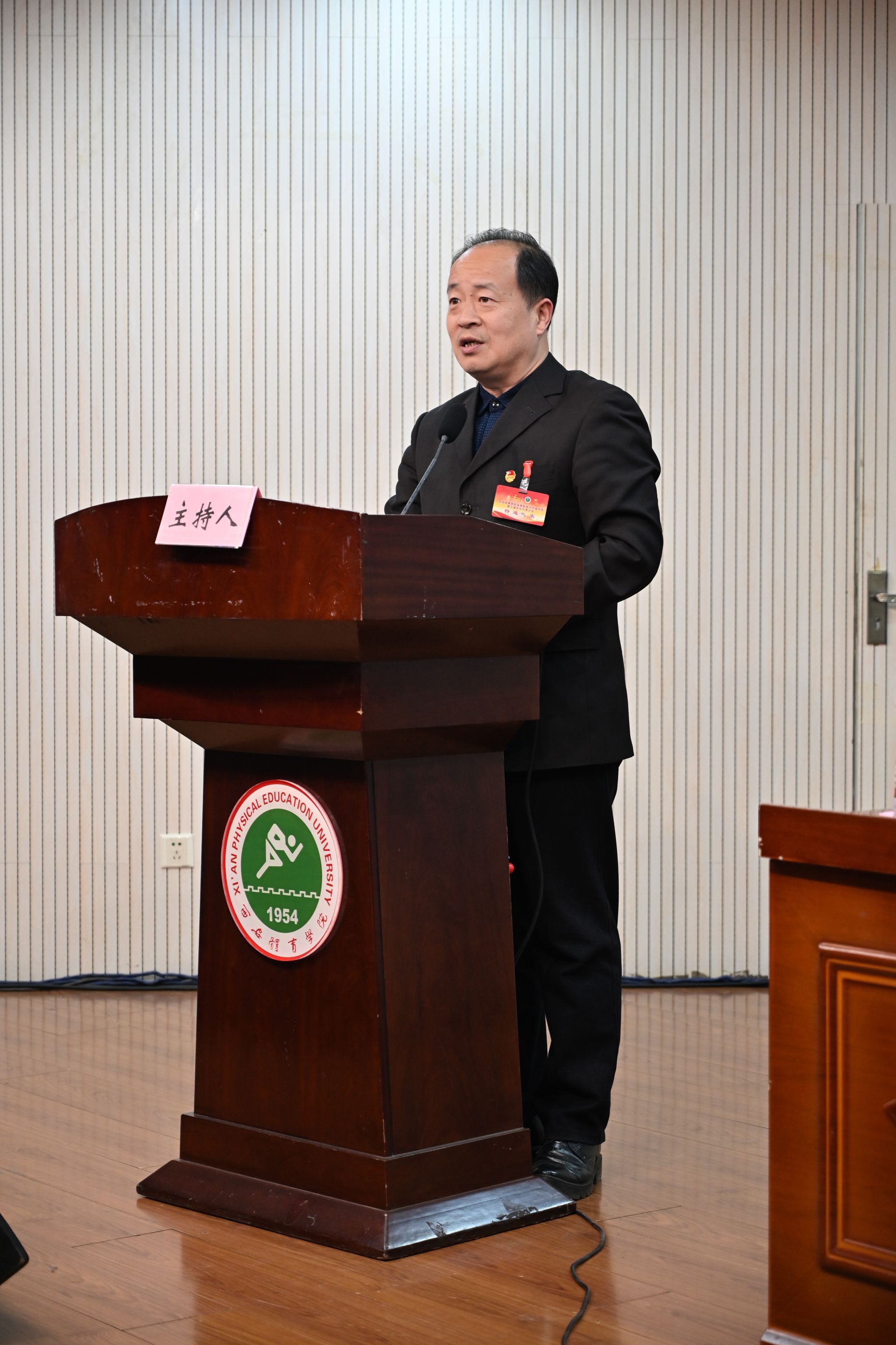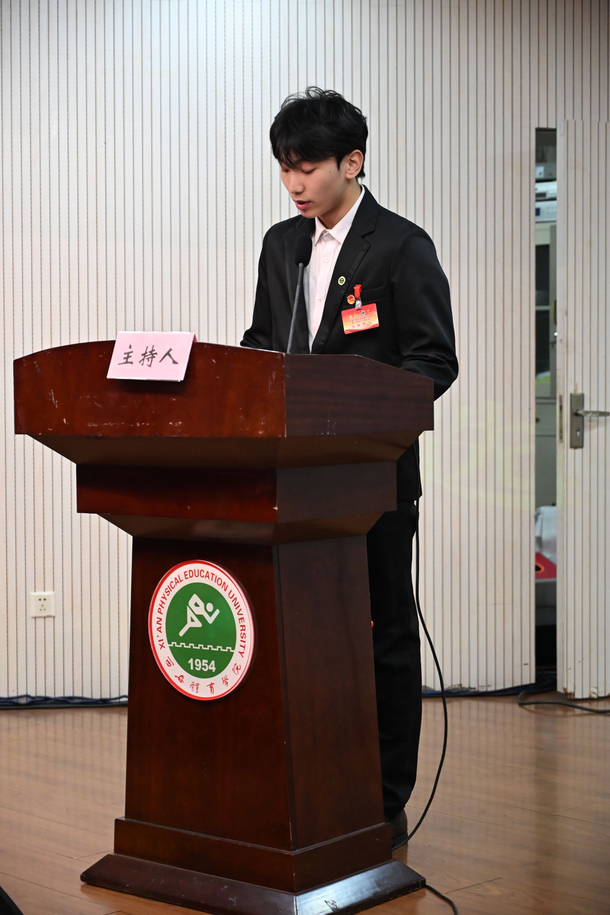第二届学生会主席李尔恒作《西安体育学院体育新闻与传媒学院第二届学生委员会工作报告》