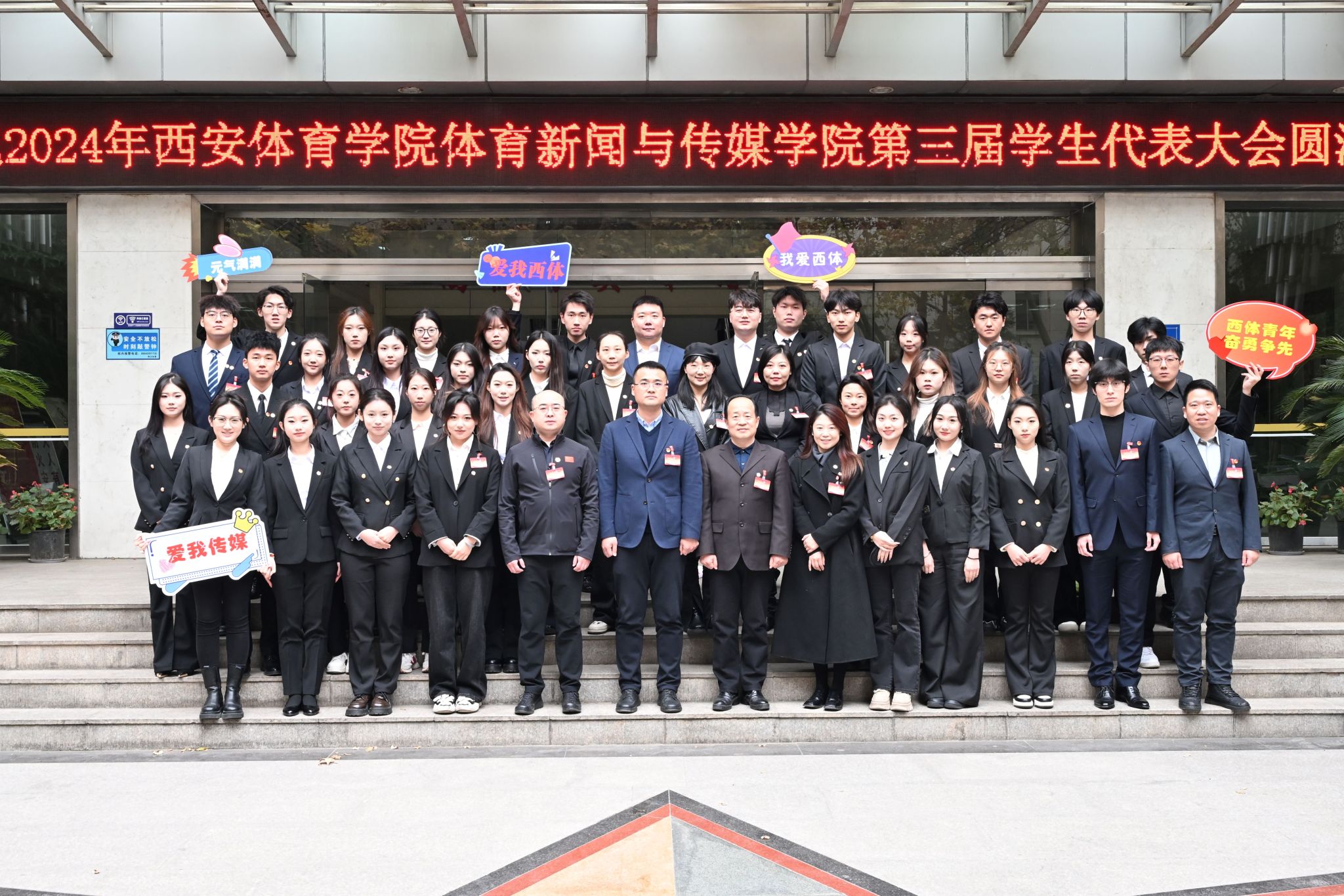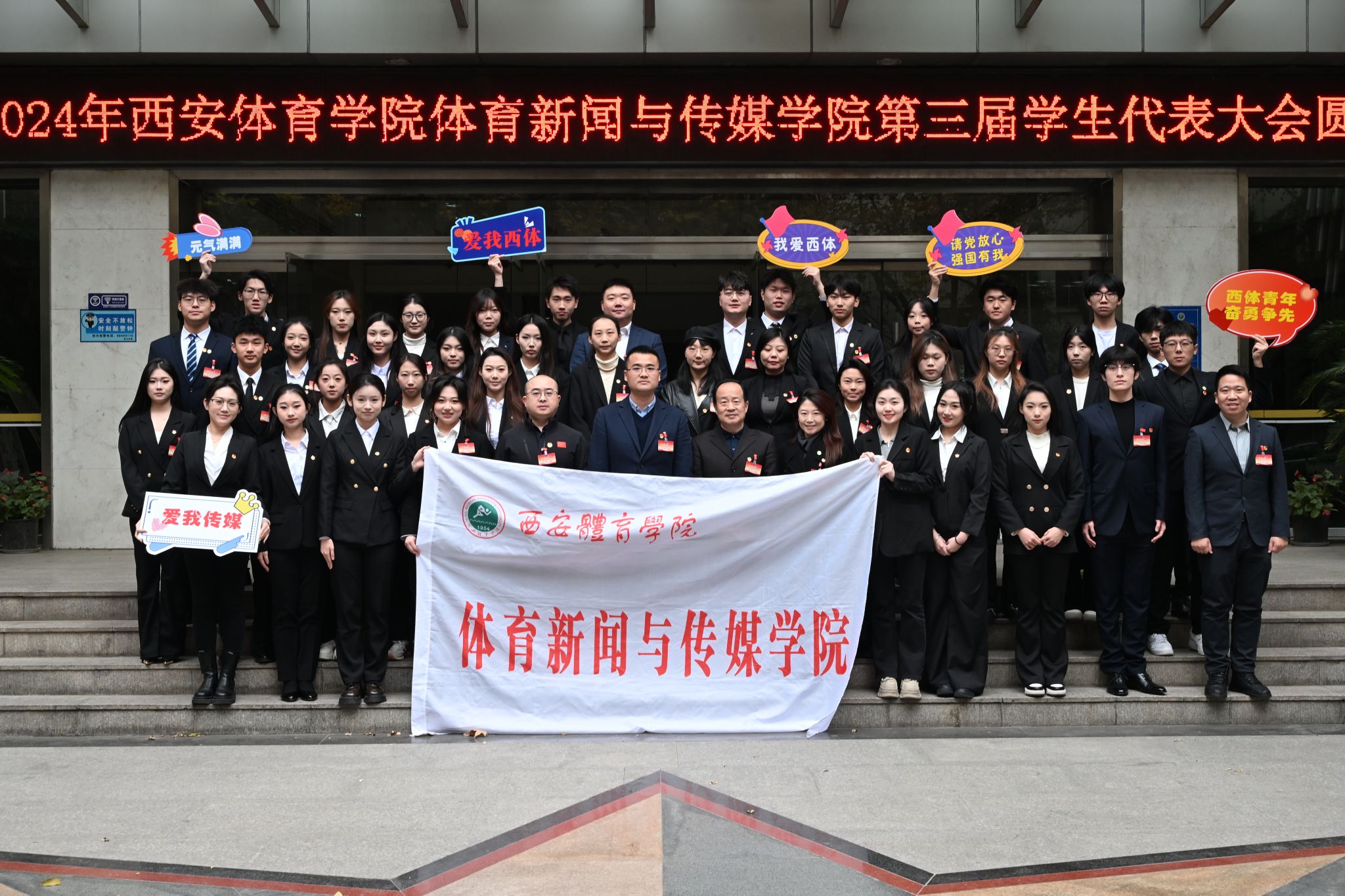 潮平岸阔催人进,凤正扬帆正当时。为高举中国特色社会主义伟大旗帜,深入学习贯彻党的二十大和党的二十届三中全会精神,在建校 70 周年的新起点和全面落实 “十四五”规划、聚力攻坚“双一流”建设目标的新阶段,西安体育学院体育新闻与传媒学院第三届学生代表大会于12月18日在含光校区教学楼一楼报告厅顺利召开。